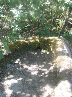 Andados mais alguns metros, fomos dar com um monumento rupestre que, à primeira vista, dá a sensação de ser um Lagar com o seu pio. Na verdade, no estado em que se encontra, parece mais um lagar do que uma sepultura. Poderia, no entanto, ter sido, anteriormente, uma sepultura que tivesse sido adaptada a lagar com a adição do pio que, por sua vez (e admitida a última hipótese), teria sido escavado na continuação do mesmo bloco granítico. Devido a a uma mancha de carvalhotos e giestas que envolvem o monumento, não consegui fotografá-lo convenientemente.